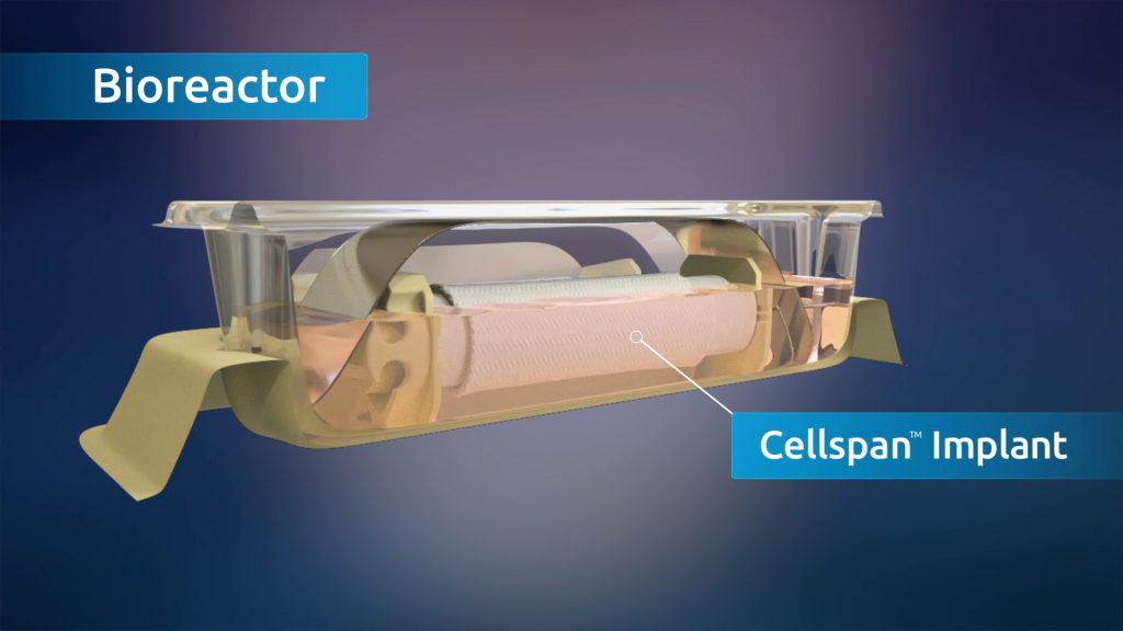 Biostage is pioneering a new technology to regenerate the patient’s native esophagus through Cellframe Technology. Two weeks before the esophagectomy, stem cells are extract and incubated with the Cellspan implant in a bioreactor.