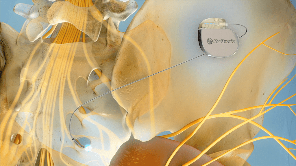 Medtronic Sacral Neuromodulation is a treatment option for patients with overactive bladder (OAB). This 3D medical animation shows dysfunction to the neurological pathway that is believed to contribute to urinary control. The InterStim system provides a minimally-invasive option to modulate electrical activity between the muscles responsible for urination and the brain. Using this system, patients may find relief from OAB without the need for physical treatment of the bladder and sphincter muscles.